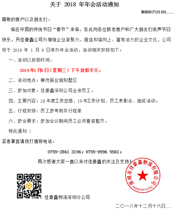 深圳佳豪鑫物流2018年年會(huì )活動(dòng)通知