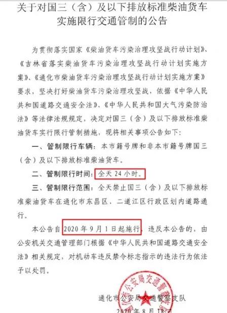 管制限行范圍:全天禁止國三(含)及以下排放標準柴油貨車(chē)在通化市東昌區、二道江區行政區劃內道路通行。