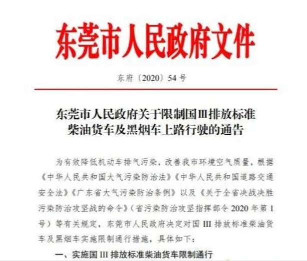 東莞:國三車(chē)、黑煙車(chē)限行