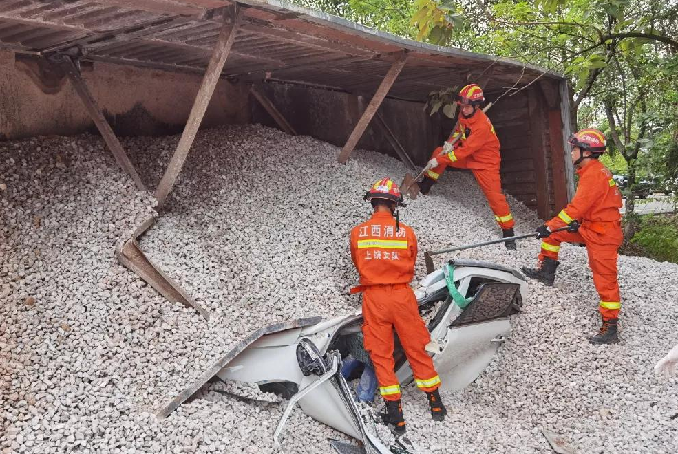 八月的結束,在上饒出現小車(chē)??柯愤?,當貨車(chē)經(jīng)過(guò)時(shí)發(fā)生側翻事故,滿(mǎn)滿(mǎn)一貨車(chē)的小石子瞬間將小車(chē)掩埋。好在救援及時(shí),被困人員僅受傷,并未出現傷亡情況。九月的開(kāi)始,出現一輛滿(mǎn)載調味品的貨車(chē)側翻事故,車(chē)上27噸調味品滾落散開(kāi),成瓶的調味品滾落滿(mǎn)地,也未出現人員傷亡情況。